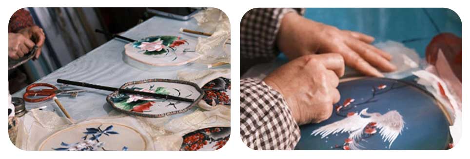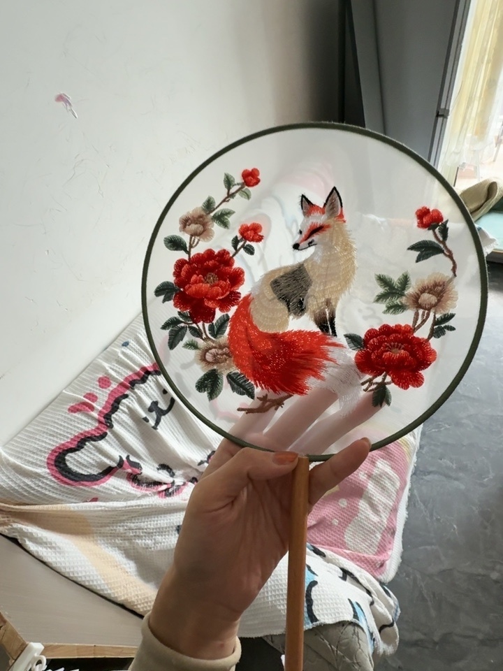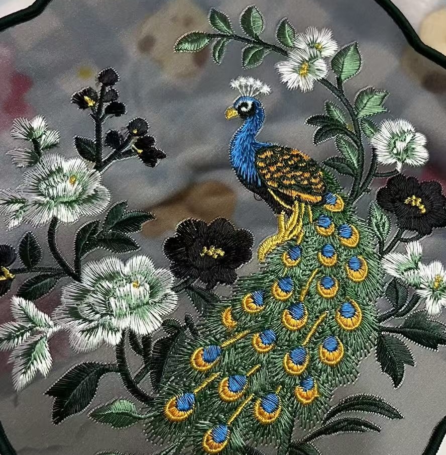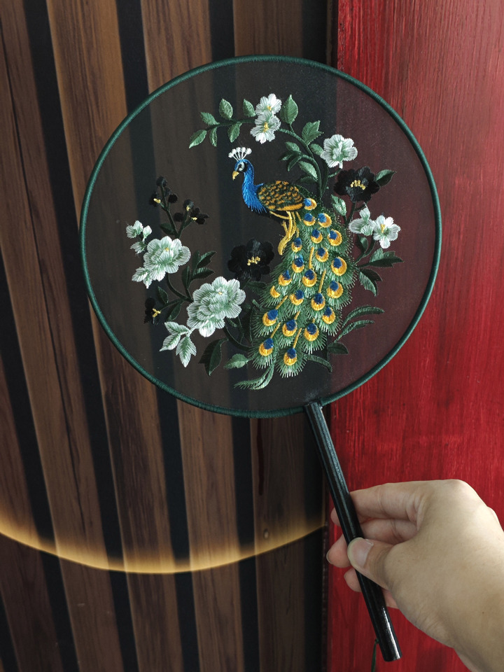 Each fan is meticulously hand-embroidered using traditional Suzhou embroidery techniques, recognized as an intangible cultural heritage of China. Fine silk threads are stitched onto delicate silk fabric, forming detailed motifs that appear vibrant yet soft, refined yet enduring.