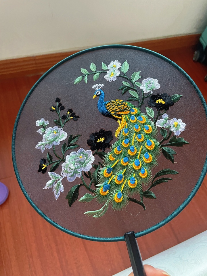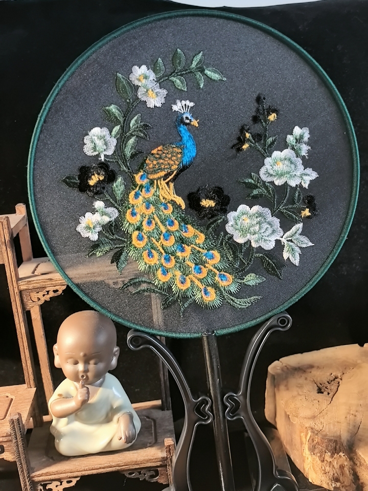 Perfect for gifting to family and friends, decorating living spaces, or adding a touch of Eastern elegance to modern interiors, this embroidered fan conveys wishes of peace, good fortune, and graceful living.